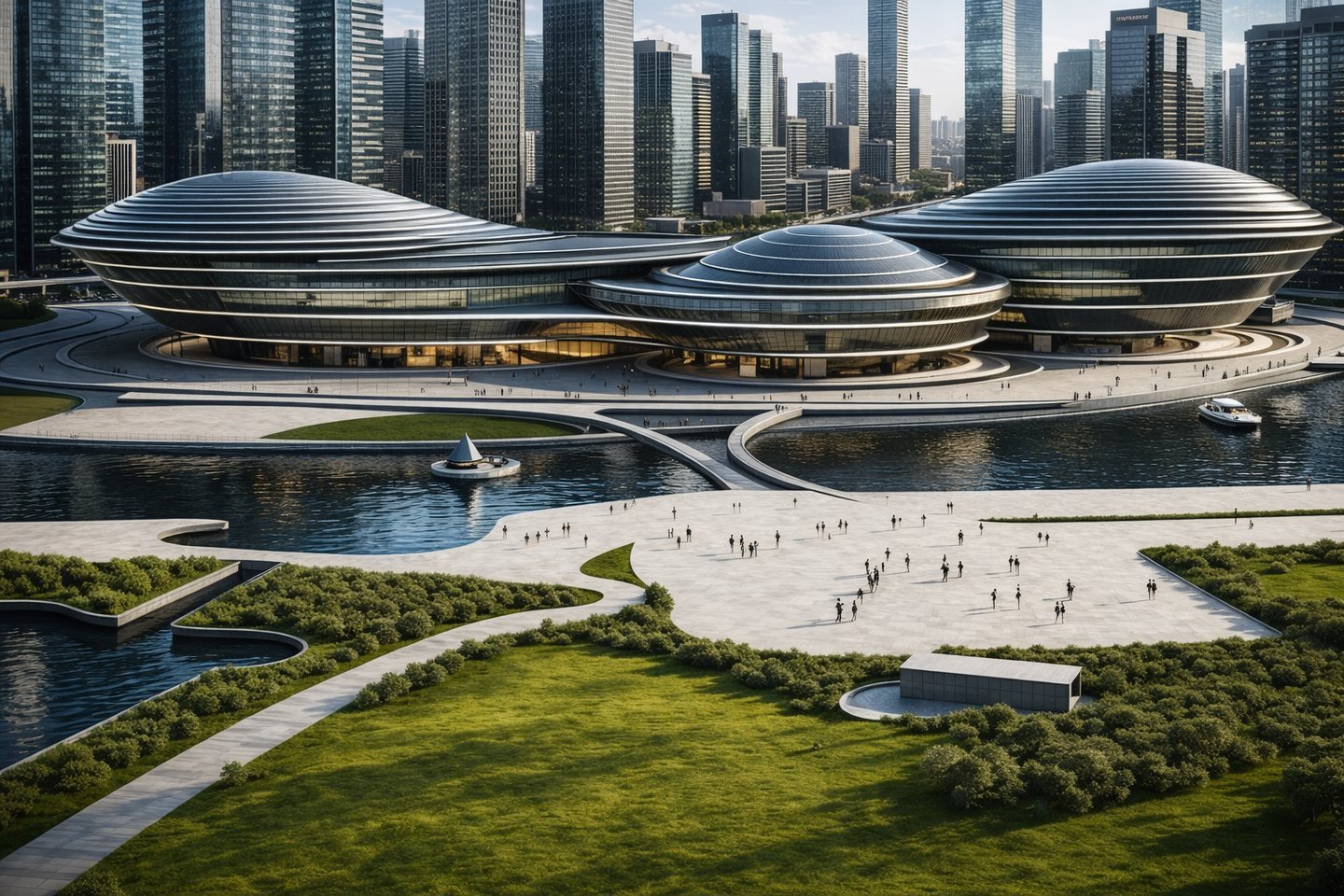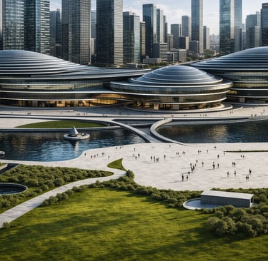 The architecture emphasizes transparency, walkability, and openness, ensuring that movement through the building is intuitive and welcoming. Soft reflective facades and gentle forms create an inviting civic environment, encouraging people to gather, observe, and participate.