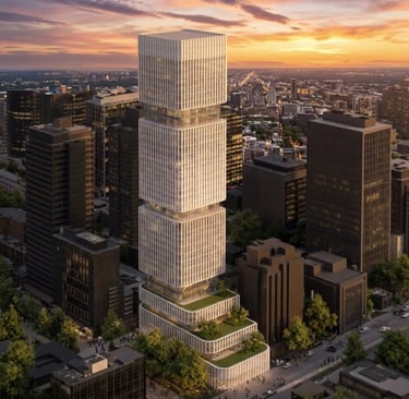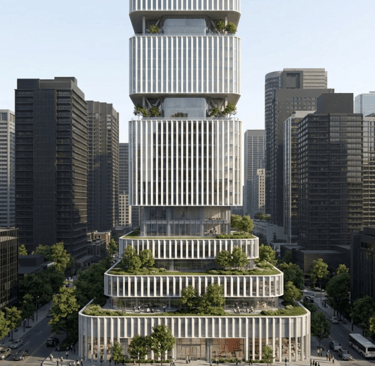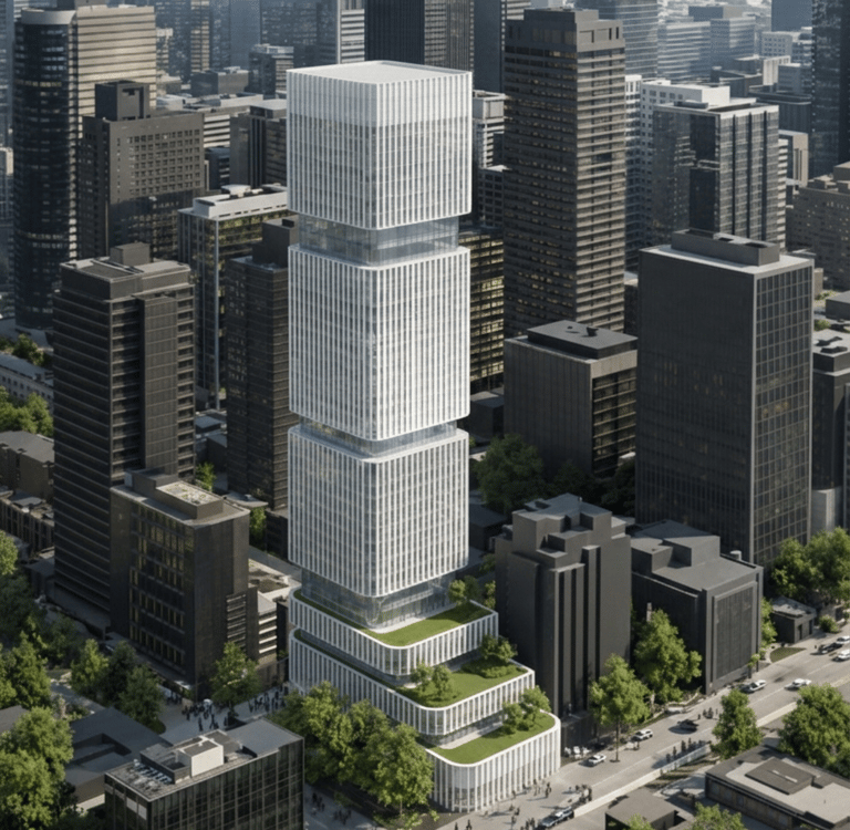 Harborlight Tower is a contemporary commercial office development envisioned for the evolving downtown core of Vancouver. Positioned within a dense urban fabric, the tower responds to the city’s unique relationship between nature, skyline, and public life, balancing vertical density with openness, light, and environmental sensitivity.