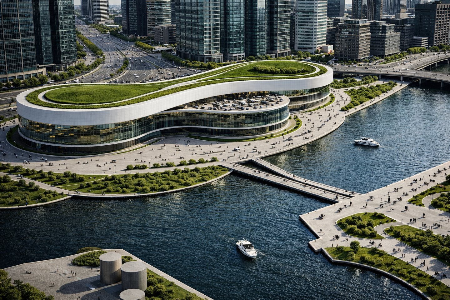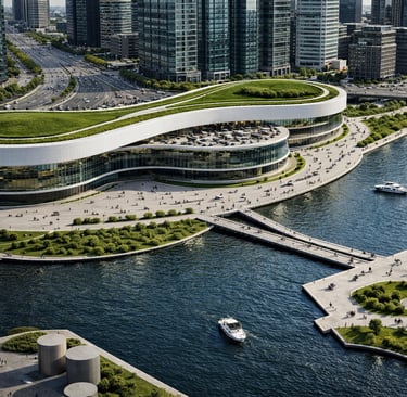 The architecture draws from the fluid movement of water, creating soft terraced edges, shaded pedestrian promenades, and elevated viewing terraces that integrate seamlessly with the waterfront landscape. The building’s continuous form encourages walkability, gathering, and slow-paced social interaction, reinforcing the centre as both a civic stage and a communal retreat.
