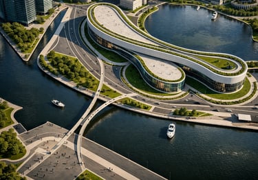 The Riverside Civic Hub is envisioned as a contemporary civic anchor for Dubai’s evolving cultural district a place where public life, education, art, and community engagement intersect. Positioned along a reflective urban canal, the centre serves as an open and inclusive cultural nexus, welcoming residents and visitors of all ages and backgrounds.