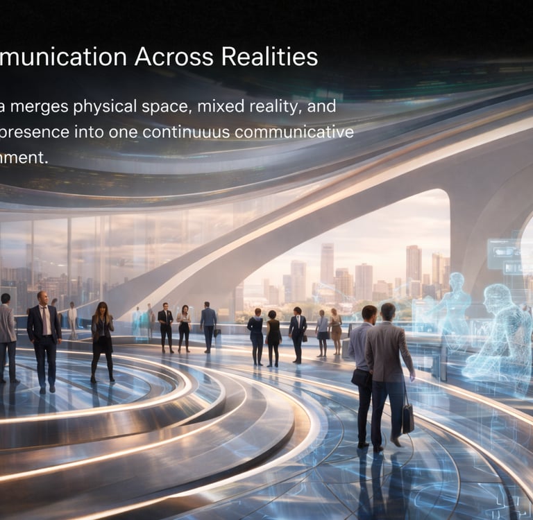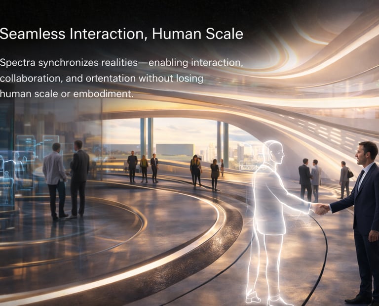 Spectra responds to this gap by proposing an architectural and technological ecosystem that unifies physical, mixed, and digital presences into a continuous communicative environment.