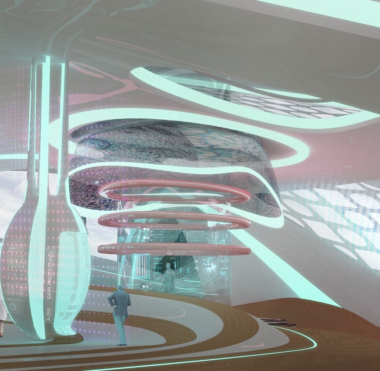 This digital realm illustrates architecture as pure communication, where meaning, interaction, and environment collapse into a unified spatial experience. It is both a destination and a conceptual mirror revealing the latent expressive potential of all realities.