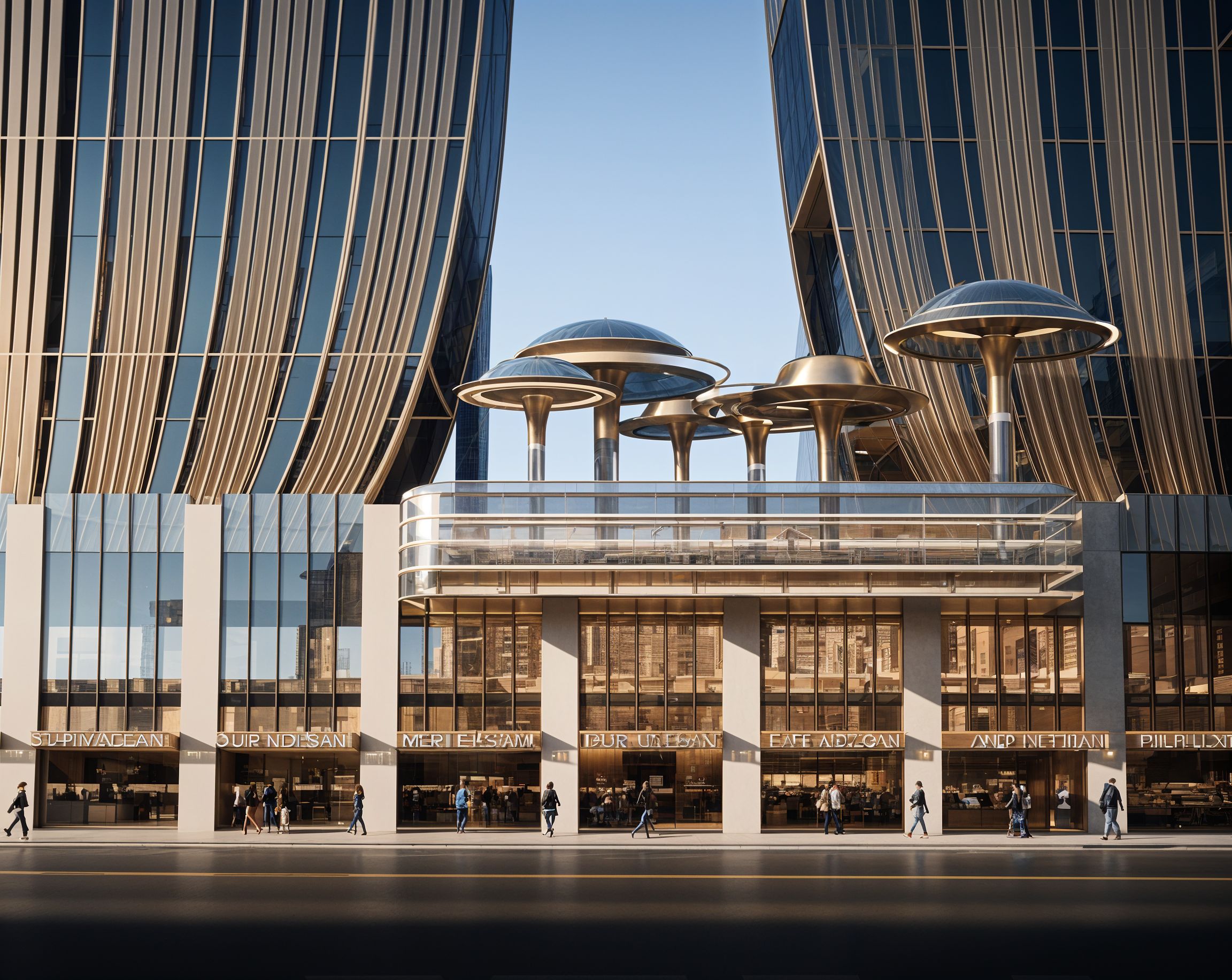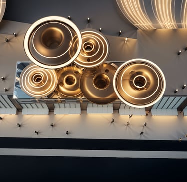 Materiality plays a critical role in shaping the experience. Brushed metallic finishes interact with natural and artificial light, producing subtle reflections that evolve throughout the day. Rather than functioning as an isolated object, Aurelia Pavilion acts as an urban connector—bridging architecture, public life, and sensory experience into a singular spatial identity.