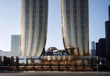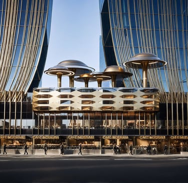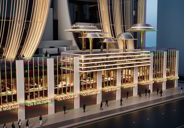 Aurelia Pavilion is conceived as a sculptural urban landmark that redefines the relationship between architecture, movement, and public space. Positioned as an architectural canopy rather than a conventional structure, the pavilion establishes a spatial threshold—inviting pause, gathering, and civic presence within the urban fabric.