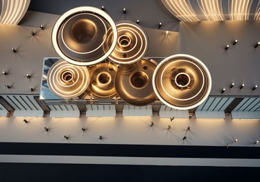 The project explores fluid geometry and layered surfaces to create a continuous dialogue between light, structure, and human movement. Curved metallic forms rise from the ground plane, framing the space beneath as both shelter and destination. The pavilion’s rhythm is defined by repetition and variation, allowing the architecture to read differently as one moves through it.