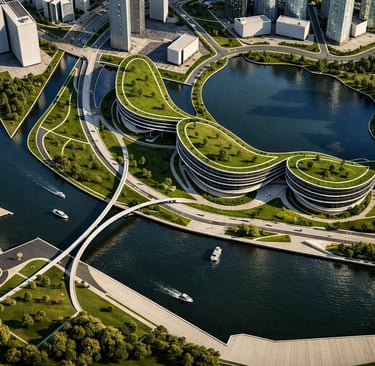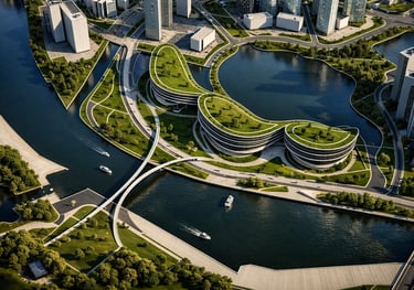 The Lysandra Civic Centre is envisioned as a public anchor for community life within Dubai Creek’s new mixed-use district. Positioned along a reflective canal system, the center links urban activity, cultural programming, and natural landscape into a unified civic environment.