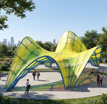 Aether Flow Pavilion is conceived as an inhabitable field of motion, where architecture is defined by continuity rather than enclosure. Its parametric surfaces unfold as a single spatial gesture, guiding visitors through a carefully orchestrated sequence of light, shadow, and movement. Structure, canopy, and circulation merge into one cohesive form, allowing space itself to become the primary experience.