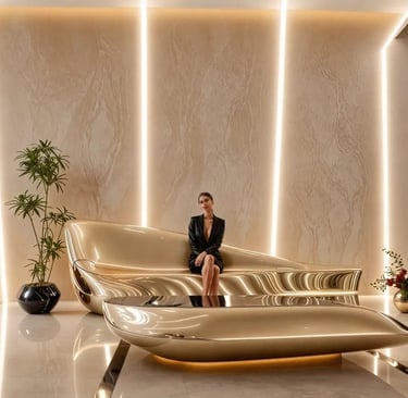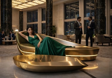 Emerald Flow is a luxury custom furniture design piece conceived as a sculptural lounge element that balances serenity, movement, and presence. Designed as both a functional seating piece and an architectural statement, it anchors contemporary interiors with quiet elegance.