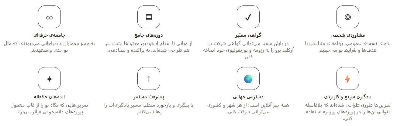ارکلند پرو جاییه که شما میتونید مسیر حرفهای معماریتون رو با وضوح بیشتر طراحی کنید، مهارتهای لازم رو یاد بگیرید، و قدمبهقدم به یک معمار توانمندتر تبدیل بشید.