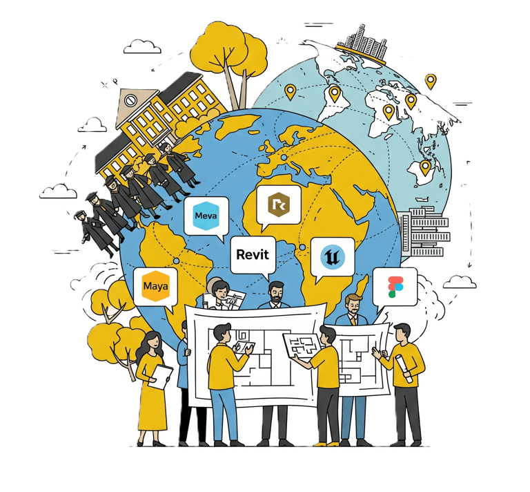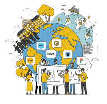 اگر میخواهی با سرعت بیشتر ویدیوها، تمرینها و رفرنسهای درست را پیدا کنی، این مسیر برای توست.دورههای ما شامل آموزش Maya، Revit، Unreal Engine، Figma و سایر نرمافزارهای حرفهای معماری است. هر دوره با پروژههای عملی همراهه و توسط اساتید با تجربه بینالمللی تدریس میشه. دانشجویان در طول دوره با چالشهای واقعی دنیای معماری آشنا شده و مهارتهایی کسب میکنند که آنها را برای ورود به بازار کار جهانی آماده میکنه.