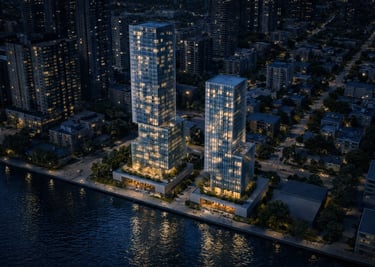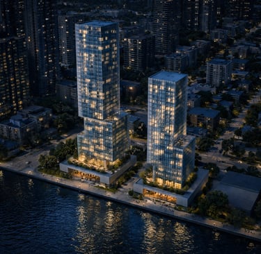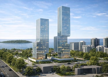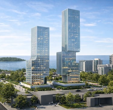 Harborline Residences is a waterfront residential architecture project located along Toronto’s waterfront, conceived as a mixed-use development that balances urban density with openness to the lake. The project introduces a refined high-rise composition that responds to both the city skyline and the expansive horizontal condition of the waterfront.