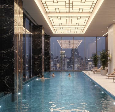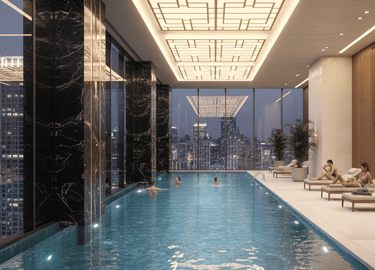 Materially, the project emphasizes clarity and restraint. Glass façades with subtle articulation reflect changing light conditions and surrounding views, while the overall composition maintains a calm and cohesive architectural language. The integration of greenery throughout the podium and tower levels further softens the urban condition and enhances environmental quality.