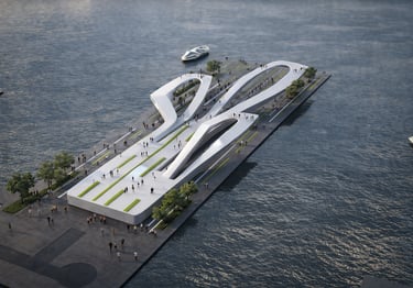 Horizon Plaza is a waterfront public realm architecture project located along Toronto’s shoreline, conceived as a sculpted urban surface that brings public life directly to the water’s edge. The project transforms the waterfront into a continuous civic space shaped by movement, openness, and spatial clarity.