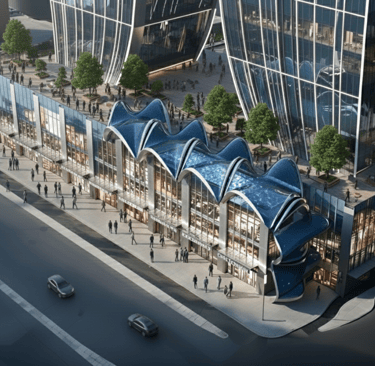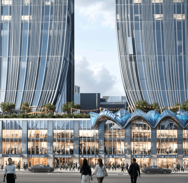 Materiality and form reinforce the promenade’s role as a public destination. Sculpted surfaces, integrated lighting, and transparent ground-level interfaces enhance safety, comfort, and visual continuity throughout the day and evening. The promenade operates as an extension of the surrounding urban fabric rather than a detached architectural object.