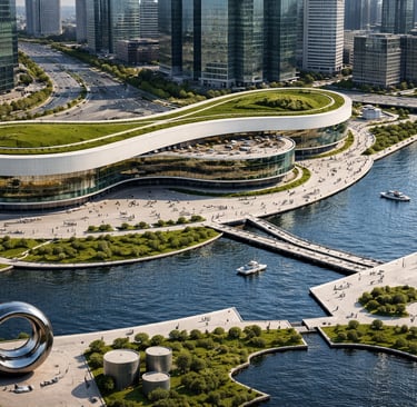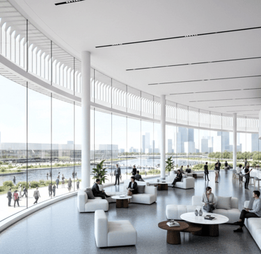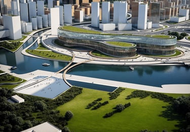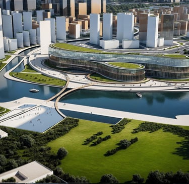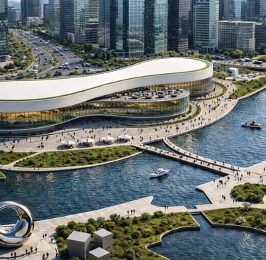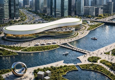 The Riverside Civic Hub is envisioned as a contemporary civic anchor for Dubai’s evolving cultural district — a place where public life, education, art, and community engagement intersect. Positioned along a reflective urban canal, the centre serves as an open and inclusive cultural nexus, welcoming residents and visitors of all ages and backgrounds.