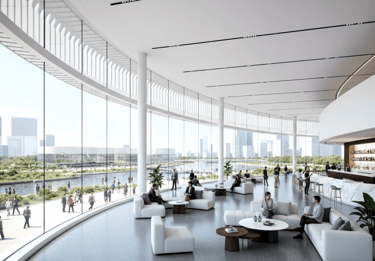 The architecture draws from the fluid movement of water, creating soft terraced edges, shaded pedestrian promenades, and elevated viewing terraces that integrate seamlessly with the waterfront landscape. The building’s continuous form encourages walkability, gathering, and slow-paced social interaction, reinforcing the centre as both a civic stage and a communal retreat.