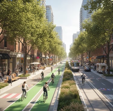 Re-imagining transit nodes, edges, and shared public spaces through human-centered urban design.